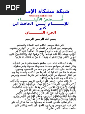 قصص الأنبياء للإمام ابن الحافظ ابن كثير الجزء الثاني